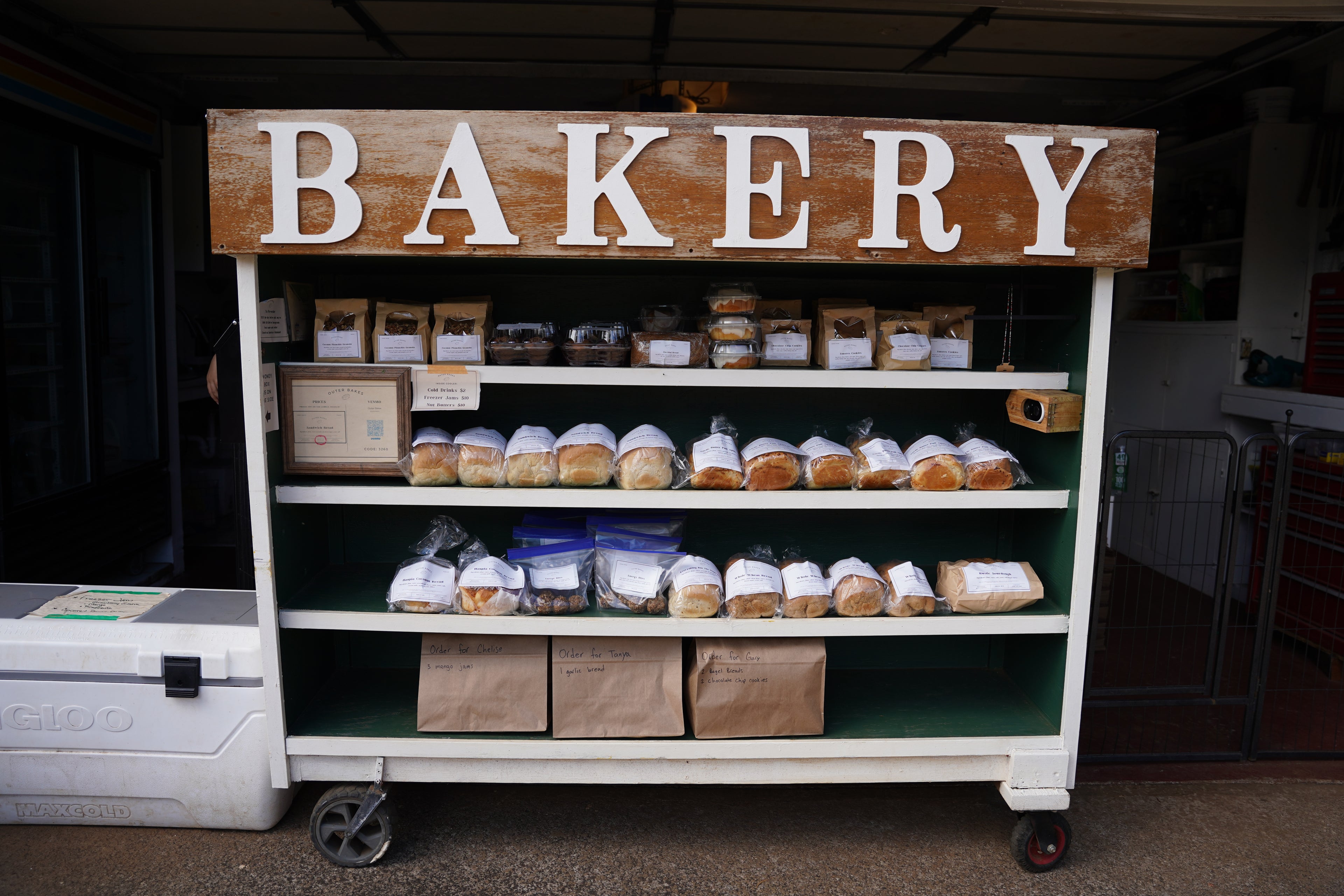 Alongside our fresh bread and cookies, we offer a variety of homemade goodies like muffins, fudgy brownies, golden blondies, crunchy island-style granola, and cinnamon rolls. We also bake specialty breads like our chocolate bread, cinnamon sugar bread, and fun, fruit-flavored loaves that change with the seasons. Every treat is made with love, simple ingredients, and that homemade touch you can taste in every bite.
